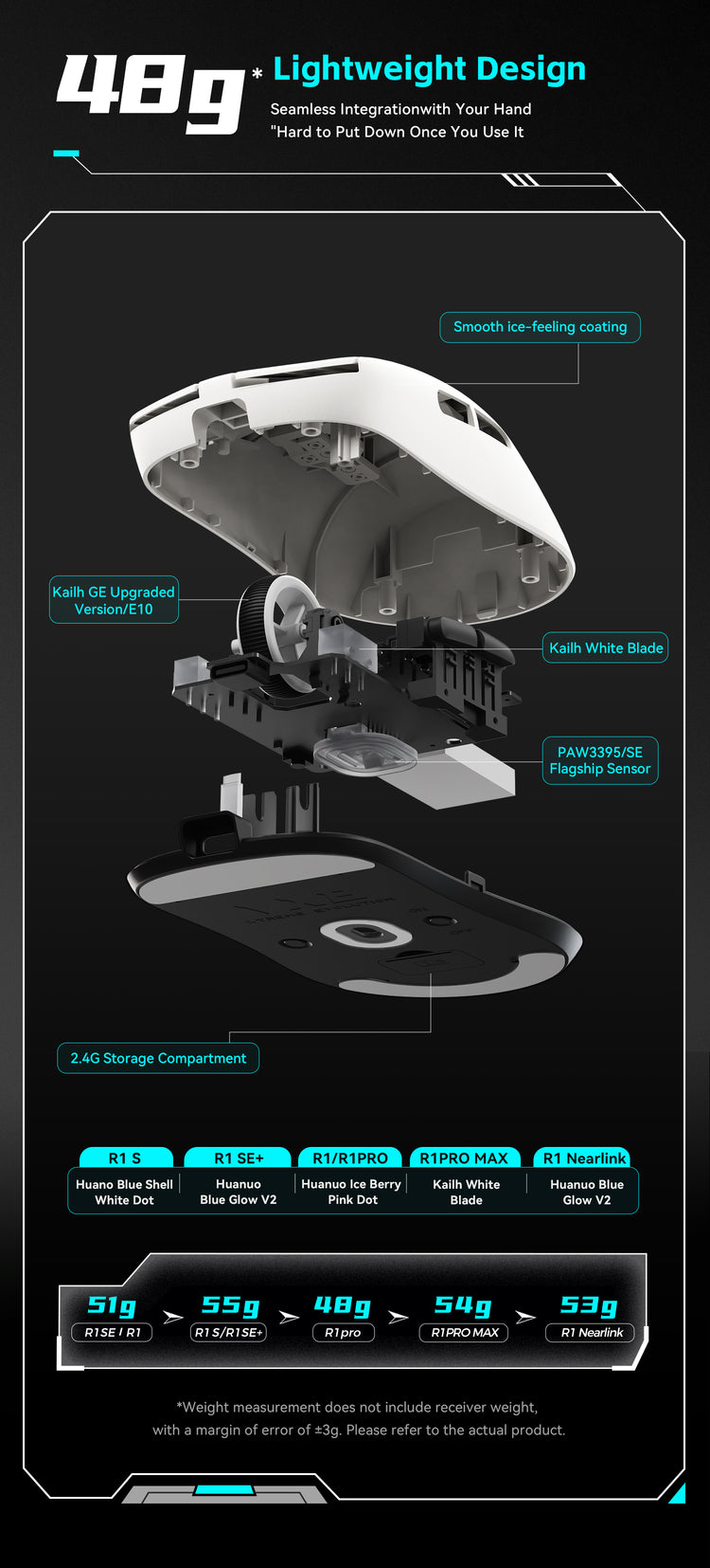 Introducing the all-new R1 S model, paired with Huano Blue Shell White Dot switches.